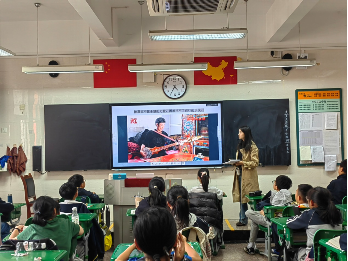 马克思主义学院22级4班思想政治教育专业学生王奕,在绵阳中学英才学校开启顶岗实习,身兼初一道德与法治课教师与十一班实习班主任两职。实习期间,指导老师张老师是她的成长标杆。张老师收放自如的课堂驾驭能力,让她洞悉高效教学的精髓;其躬身实践的行事风格与关爱师生的热忱态度,更让她深刻体悟到教育者的责任担当。王奕潜心汲取前辈经验,将所学所思融入教学设计,在实践中精进育人能力,稳步向合格人民教师的目标迈进。在育人一线,王奕始终以倾听者的身份贴近学生。课余时间里,她常与学生促膝交流,了解兴趣爱好,纾解成长烦恼。无论学生面临学习难题还是生活困惑,她都第一时间伸出援手,以真诚陪伴与暖心关怀为学生保驾护航。在她的悉心引导下,学生们向阳成长,共同书写了一段充实难忘的校园时光。